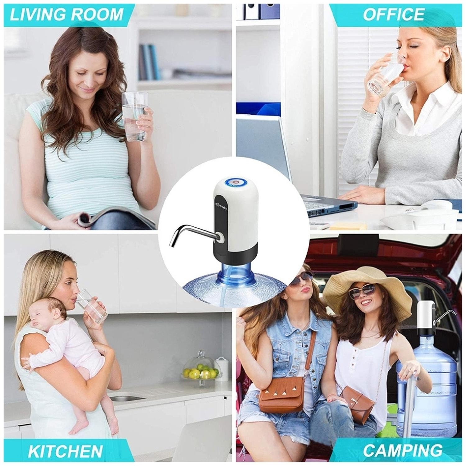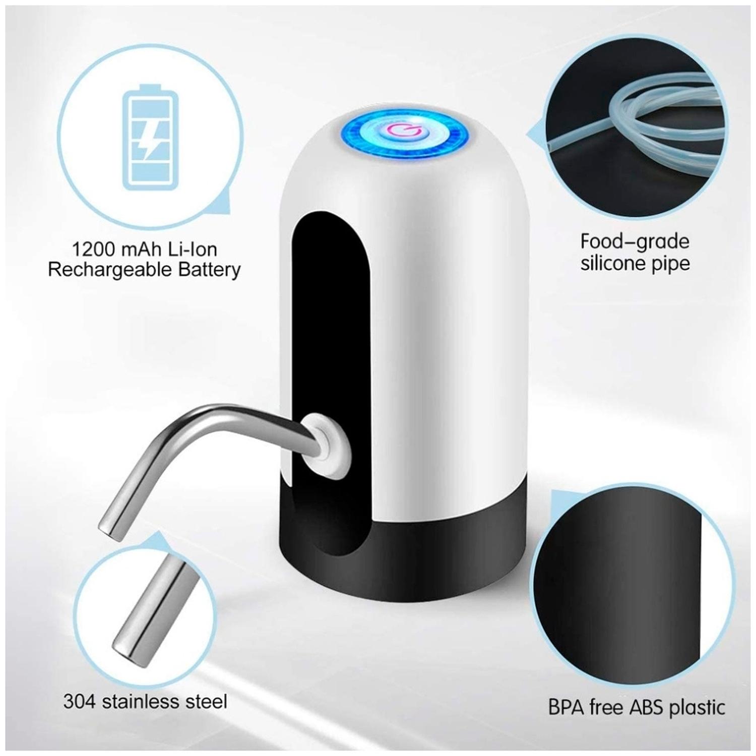 Recargable por USB: la batería recargable incorporada le permite usar durante 30 a 40 días o alrededor de 4 a 5 botellas de agua de 5 galones una vez cargada por completo.