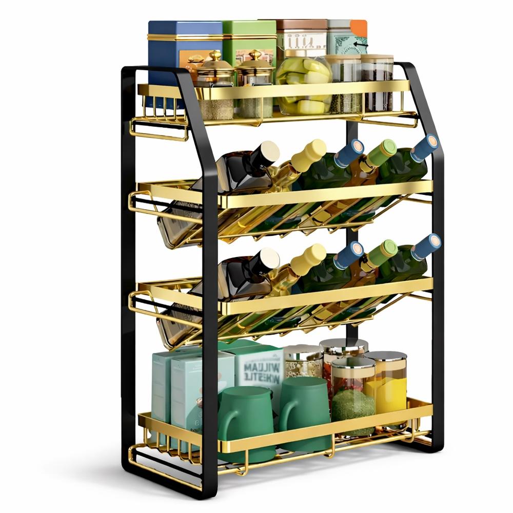 Con diseño de cuatro capas, suficiente espacio para colocar sus tarros de condimento, lata de aceite, cuchillo de cocina, batidor de huevos, pelador, tabla de cortar, vajilla, vino, etc.