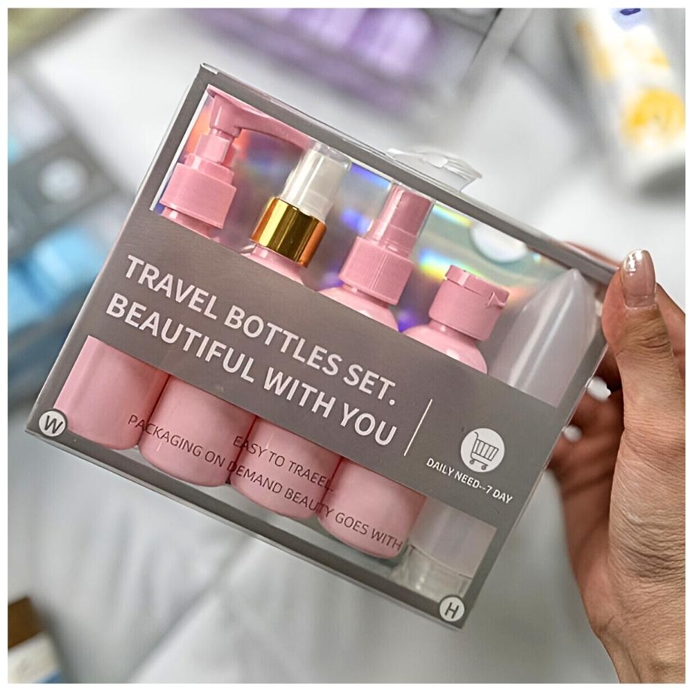 Set de 5 Frascos Envases de Aseo Rosado EC77